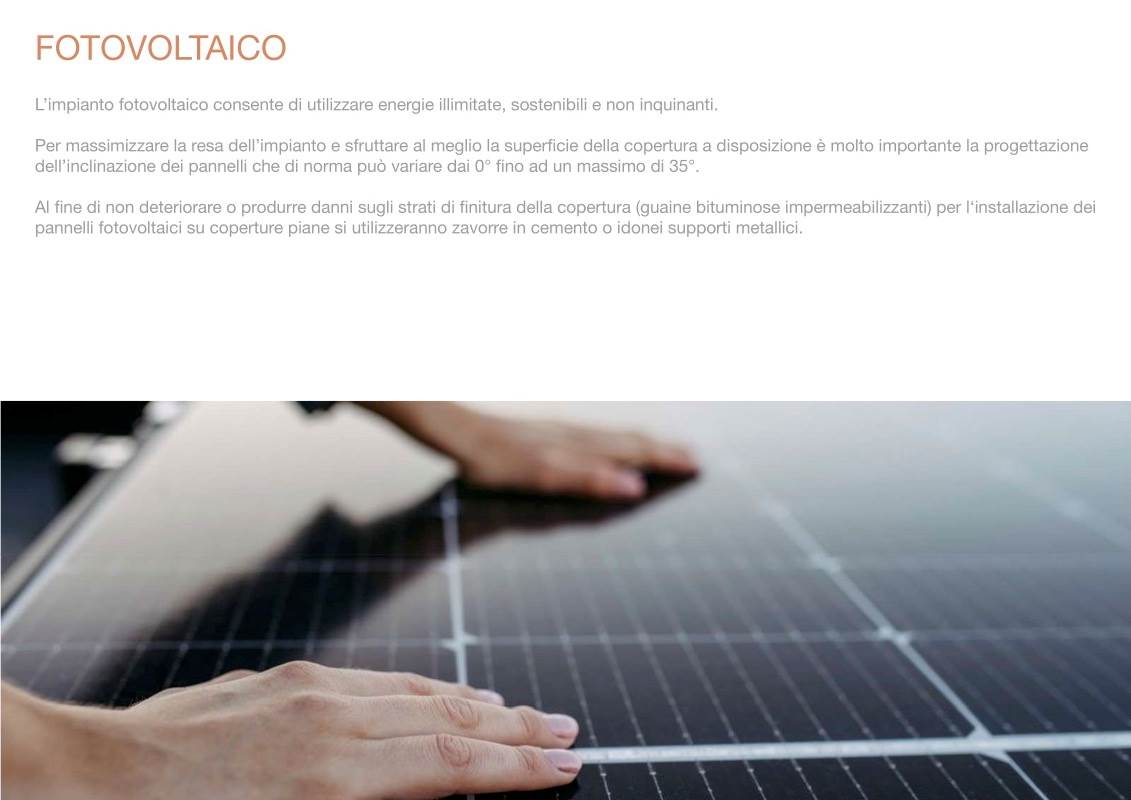 • Fotovoltaico per la produzione di almeno il 70% dell’energia elettrica