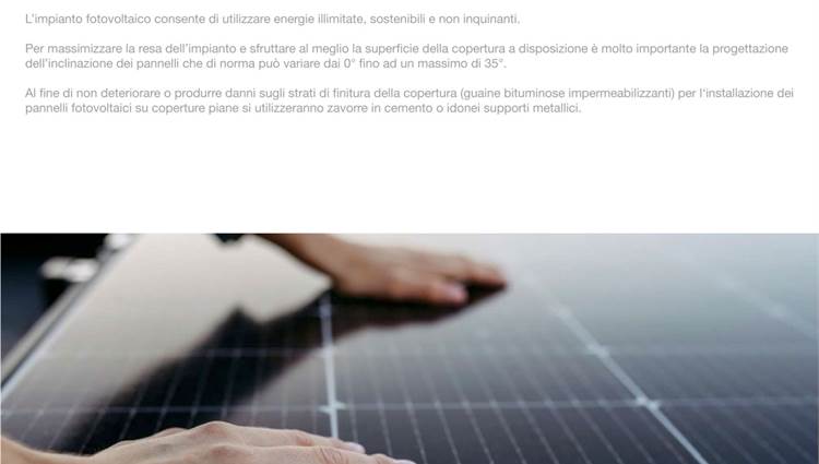 - Pannelli fotovoltaici per autoproduzione dell’energia;